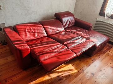 Vendo divano in vera pelle 8 anni di vita sempre mantenuto bene e trattato periodicamente con il prodotto per la pelle, tre pezzi staccabili di cui due allungabili e richiudibili elettricamente e uno fisso per distendersi.
