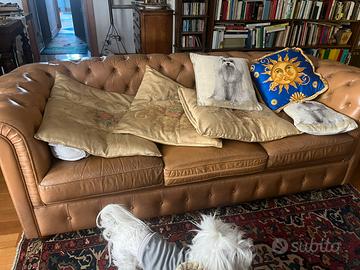 Divano in pelle 3 posti modello chesterfield 100% pelle a pieno fiore Con letto inserito usato pochissimo matrimoniale