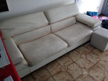 divano in pelle color panna con poggiapiedi