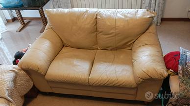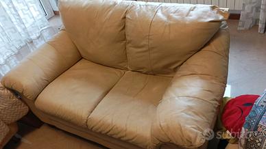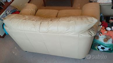 Divano in vera pelle colore giallo crema, piedi in legno, misure cm. 145x88x85(h), vendo ad euro 150. Non spedisco. Trasporto a carico dell'acquirente