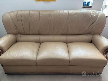 La pelle, morbida e resistente, dona comfort e raffinatezza, mentre le finiture in legno aggiungono un tocco caldo e ricercato, ideale sia per ambienti classici che moderni.