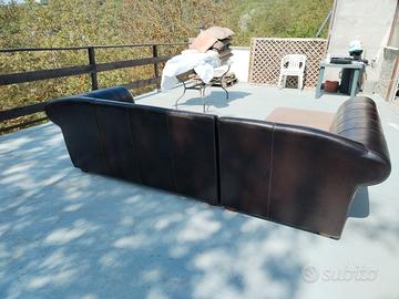 divano in pelle marrone scuro con cuscini sfoderabili larghezza delle sedute in senso orizzontale: 205 cm profondità 70 cm lunghezza complessiva incluso braccioli 276 cm penisola: cuscino lungo 192 cm, penisola comprensiva di schienale: 220 cm cucino di pelle in foto nel divano incluso nel prezzo regalo anche secondo corredo di copri cuscini color beige chiaro trasporto a carico dell'acquirente usato ma in buone condizioni, tenuto bene. invio ulteriori foto se richieste.