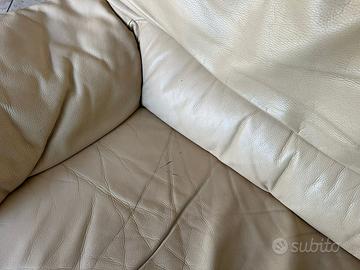 Il divano ha molti anni ma si matiene bene, nessun taglio o strappo . Vendo il 3 posti , 2 sedute , grande in pelle color panna. Dimensioni 2 metri. Ideale come divano da taverna, casa al mare o per chi cerca una soluzione economica. Trattabile, contattami su whatsapp.
