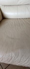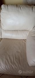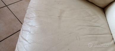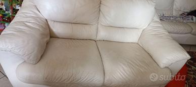 Divano due posti usato,in pelle avorio. Presenta segni di usura come da foto,ma ancora in buone condizioni . Ottimo per casa vacanze . Solo ritiro.