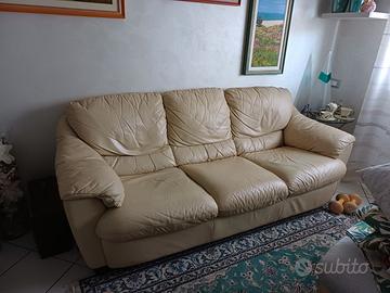 Si vende divano in pelle beige 3 posti della Divani e Divani, tenuto molto bene con suo pouf in dotazione.