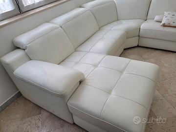 DIVANO IN PELLE BIANCA SPESSORE 5 mm A PENISOLA 3m X 3m. TENUTO MANIACALMENTE IN PERFETTE CONDIZIONI MEDIANTE COPRIDIVANO CHE DO IN DOTAZIONE. NO PERDITEMPO. IL PRODOTTO É DI ALTA QUALITÀ. VENDO PER TRASFERIMENTO IN ALTRO APPARTAMENTO.