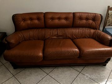 Divano in pelle e legno massiccio laccato