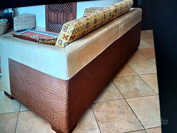 Divano in pelle e tessuto semi nuovo, in ottime condizioni dai colori caldi