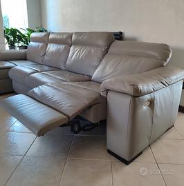 Per trasloco svendo 🛋️ Divano in Pelle Grigio Elefante 🐘 con Penisola e Relax Elettrico Marchio - Ego Italiano