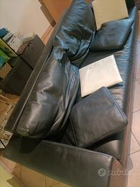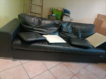 Vendesi divano in pelle nera nuovo mai usato, fabbricato in Romagna precisamente a Forlì con materiali di ottima qualità, piedini in acciaio completo di cuscini in pelle bianchi e neri.