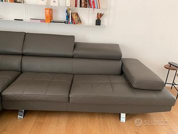 Vendo per cambio casa divano a L con possibilità di essere separato in due divani. Morbidissima pelle grigio antracite. Poggiatesta regolabili. Michieli Made in Italy. 220x300x100.