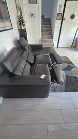 Vendo ottimo divano in vera pelle color caffè a 3 posti composto da due poltrone motorizzate elettricamente con telecomandi e da una sceslong lunga 150cm.