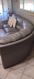Divano in pelle ad angolo , marca poltrone sofá, colore grigio canna di fucile in ottime condizioni . misure 3 metri in lunghezza con una profondità di un metro da un lato e dall'altro 1 metro e mezzo completo di mezzaluna completamente removibile con profondità di 65 cm. mille