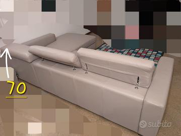 divano molto comodo, con poggiatesta regolabili separatamente, usato da due persone di 75 e 55 kg, no sfondato, no bambini, no animali, nessun segno di usura, sempre tenuto col copri divano su misura che regalo in caso di acquisto.