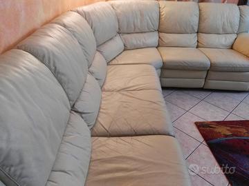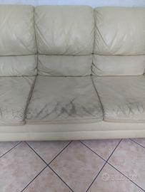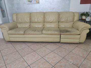 Buonasera vendo divano 4 posti con possibilità di aggiungere 2 pezzi per diventare angolare ...da come si vede dalle foto ci sono segni di usare sulla pelle. Disponibile fa metà giugno.