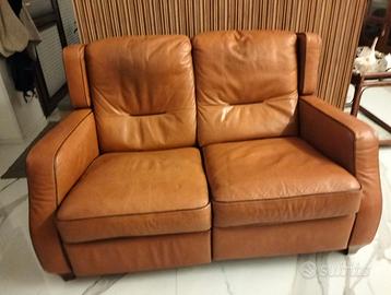 Divano divani&divani di Natuzzi. Pelle marrone con meccanismo manuale relax. Misure alto cm 90, lungo 1.45, profondo cm90. Buone condizioni qualche piccolo graffio sulla parte esterna di destra.