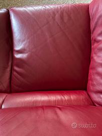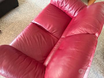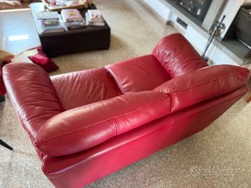 Divano 2 posti in pelle rossa, Divani&Divani by Natuzzi. Presenti segni di usura.