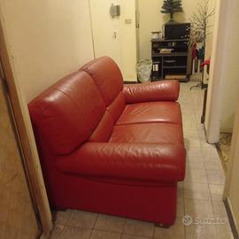 Divano 2 posti. Rivestimento in pelle di colore rosso. Misure: Lunghezza 160 x Profondità 97 x Altezza 80 cm. Senza contenitore nè letto estraibile.