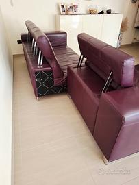Divano in pelle colore Prugna di 3,10 mt con chaise longue di 1,70 mt marchio Seduta D'Arte (made in Italy)