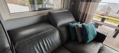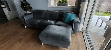 Causa cambio abitazione vendo divano in pelle scamosciata 3 posti, una seduta alzata testa e piedi elettriche, 2 sedute con alzata testa manuale, completo di pouf come da foto, larghezza totale 2,60 mt