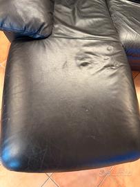 Divano in pelle sintetica 4 posti con chaise longue, nero in perfette condizioni come da foto, piccole imperfezioni sugli angoli del pannello posteriore come da foto 5 e delle piccole macchie( che possono essere trattate) sulla parte finale chaise longue come da foto 6.