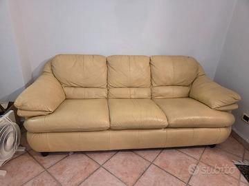 Divano in pelle tre posti, largo circa 200cm. Colore giallo chiaro. Buone condizioni.