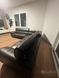 Divano in vera pelle, colore testa di moro, con poggiatesta reclinabili. Misure: 280x280, profondità 100, seduta 60, h 70/90. Condizione molto