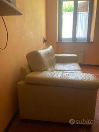 Divano pelle primo fiore, colore beige, ancora in buono stato.