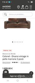 divano tre posti in vera pelle vintage maison du monde pagato 1899 euro lo vendo in perfette condizioni a 750 euro