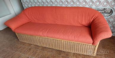 Divano in rattan con rivestimento in tessuto arancio. Misure 220x90cm
