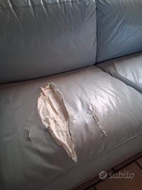 divano in similpelle colore grigio chiaro 3 posti, usato, segno di taglio sulla seduta destra. Struttura ancora buona. Smontabile. Misure altezza 80cm, profondità 98cm, larghezza 195cm