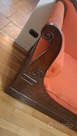 Vendo elegante divano tipo dormeuse/chaise longue in stile classico, con rivestimento rosso e struttura in legno con finiture decorative.