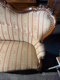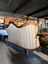 Vendo elegante divano in stile Luigi Filippo, con struttura in legno lavorato e rivestimento in tessuto classico a righe. Mobile di grande fascino, ideale per salotto, ingresso, studio, arredamento vintage o ambienti in stile classico. Il divano si presenta in buone condizioni generali, con struttura solida e stabile, come visibile in foto. Linea raffinata, schienale alto e lavorazioni decorative che lo rendono un pezzo d’arredo molto scenografico. Caratteristiche: •struttura in legno lavorato •stile classico / Luigi Filippo •rivestimento in tessuto elegante •ideale per salotto, studio, negozio o casa d’epoca •buone condizioni generali Vendita vista e piaciuta. Per ulteriori informazioni, misure precise o altre foto, contattami in privato, ritiro al carico del acquirente. Prezzo trattabile