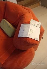 Divano curvo di circa 2,70 metri interamente sfoderabile sia cuscini che sedute di fabbricazione italiana Linea Zeta Composto da due blocchi separabili al centro.