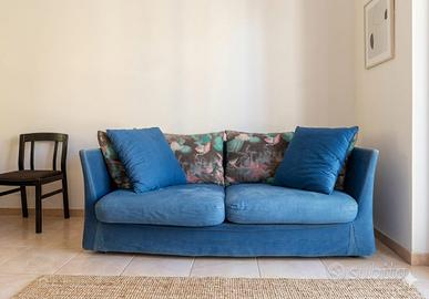 Titolo: Divano 2/3 Posti Blu Elettrico – Design Curvo e Confortevole Prezzo: 250 € Luogo: Petrella Tifernina Descrizione: Vendesi per rinnovo arredamento elegante divano dalla particolare linea curva, perfetto per dare un tocco di colore e personalità al soggiorno o a uno studio. Colore: Blu acceso con cuscini decorativi coordinati (fantasia floreale/astratta inclusa). Comfort: Seduta profonda e accogliente, ideale per il relax. Condizioni: Buone condizioni generali. La struttura è solida e l'imbottitura tiene ancora molto bene la forma. Presenta lievi e normali segni di utilizzo (come da foto). Dimensioni (approssimative): [larghezza 1.70 cm profondità 90 cm altezza 80 cm]. Il divano è stato tenuto in ambiente pulito e non fumatori. Disponibile per la visione senza impegno. Note per il ritiro: Il trasporto è a carico dell'acquirente (si trova al [Piano1] senza ascensore). Disponibile da subito. Prezzo Trattabile
