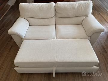 Divano poltrone e sofà Talzano tre posti in tessuto con meccanismo scorrevole DIM poggiapiedi. Due coperture in tessuto colore bianco ottico e Bianco perla. Condizioni perfette. Vendita solo per cambio arredamento. Età 4 anni Dimensioni 98x210x97 (vedi file allegato)