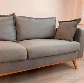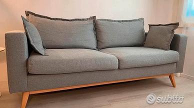 Divano acquistato da Maison du Monde, come nuovo, color grigio con piedini in legno, nessun difetto, comodo , 3sedute, rivestimento lavabile , pagato 650 ( non è un divano letto). Comodo e molto bello. Misure: 2metri lunghezza , 90 profondità.
