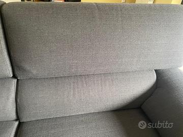 Vendo divano in tessuto grigio, completamente sfoderabile, lungo 2 metri, composto da 2 posti molto ampi, utilizzabili comodamente anche da 3 persone.