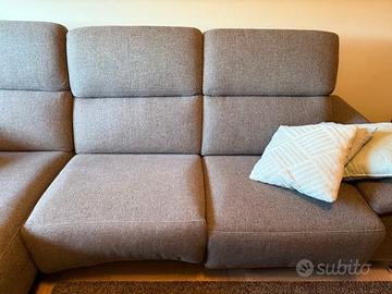 Vendo causa trasloco bellissimo divano in tessuto seminuovo usato pochissimo della ditta ROSINI (PT) mod. chaise longue york large sx , Misura 293x165 con due confortevoli relax elettriche (con fattura 2021) al prezzo di 1500€