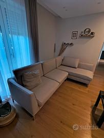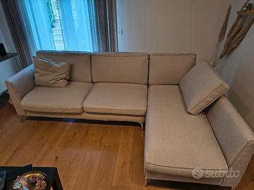Divano in tessuto lavabile, sfoderabile. Colore beige, piedini in acciaio cromati. Non ci sono macchie e non é danneggiato, comprato nuovo 4 anni fa. Dimensioni 260x160 cm e profondità 80 cm