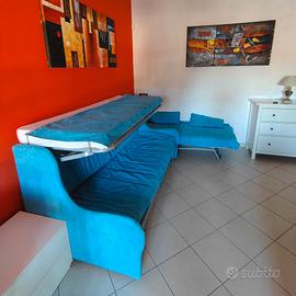 divano in ottimo stato. velluto blu, 3 posti a sedere. Come letto, matrimoniale + singolo oppure 3 singoli. misure a divano chiuso 2mt x 1mt x 1mt. ideale per ospiti se l'ambiente è piccolo. prezzo trattabile. ritiro in loco, Salsomaggiore Terme