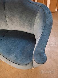Elegante Divano Vintage in Velluto Blu Petrolio -