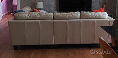 Divano in pelle colore crema con penisola. Misure 2,80 cm x 2,20 cm della Divani & Divani. Adatto per una seconda casa . Ha una decina di anni , e in buone condizioni anche la pelle non presenta difetti.