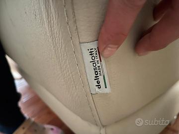 Come da titolo vendo divano in pelle di produzione artigianale della DeltaSalotti , causa trasloco in casa già arredata,divano fisso con poggiatesta regolabile,colore bianco con piccolo difetto su un lato come da foto ,divano molto comodo e solido,vendo a 900 € trattabile ,per chi fosse interessato fatte le vostre oferte,il divano si trova a Camponogara,trasporto a carico del acquirente