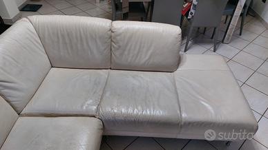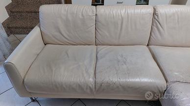Vendo divano in vera pelle, con segni di usura sulla seduta. Da vedere. Dimensione 200×210 cm.