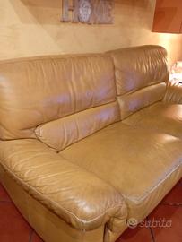 divano tre posti con rivestimento in vera pelle, buonissime condizioni, comodo, tutto sfoderabile. zampe in legno. 3/4 cm.