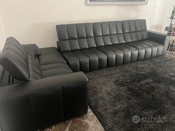 Divano modulare in vera Pelle (pieno fiore), mai usato come nuovo con pouf , che puó essere utilizzato sia in linea dritta , sia angolare che centrale. É come nuovo, mai usato quindi, in condizioni impeccabili come nuovo. Schienali ribaltabili , metri 5,35 in lunghezza ma a seconda delle necessita’ come da foto , avendo moduli staccabili e componibili può essere modificato. I 4 moduli da 1,10 circa più il pouf di circa 95 cm.