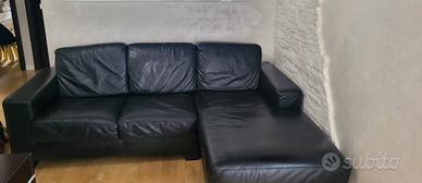 Vendesi divano in vera pelle con chaise longue