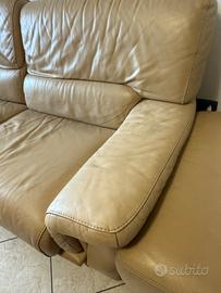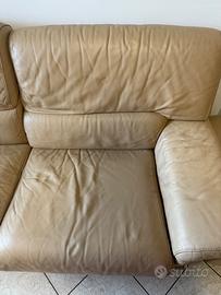 divano letto in vera pelle + puff abbinato vendita causa trasloco, materasso del letto da cambiare. appartamento situato al piano terra misure : divano 2m x 1 m puff 70cm x 50 cm
