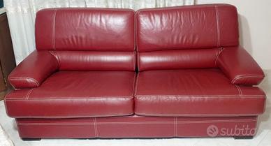 Vendo divano 3 posti in vera pelle color bordeaux, elegante e di grande impatto.